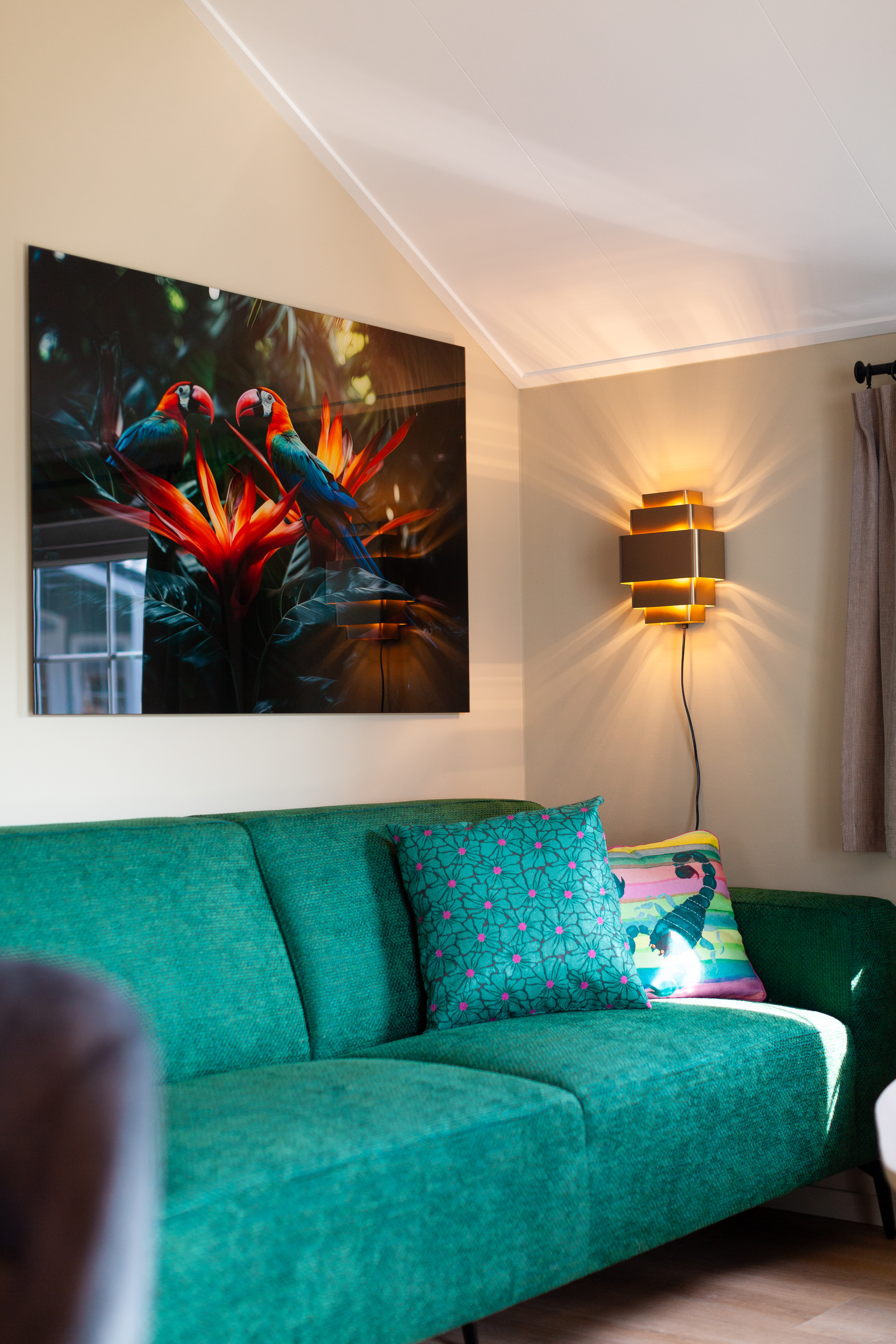 The comfortable and sturdy Zwinlodges are suitable for 6 persons and are equipped with all modern conveniences. The six-person Zwinlodge has 2 spacious bedrooms, one bedroom has a double bed and the other room has 2 single beds. The third bedroom will be a unique experience for the children, because this "stork's nest" is located above, in the ridge of the chalet. The "nest" is accessible via a staircase in the living room and therefore only suitable for children over 4 years. There is one bathroom with a shower, a separate toilet and a kitchen. The inventory of the kitchen includes a dishwasher, (combi) microwave, refrigerator, Nespresso machine. There is also a spacious veranda where you can enjoy Zeeland's outdoor life.